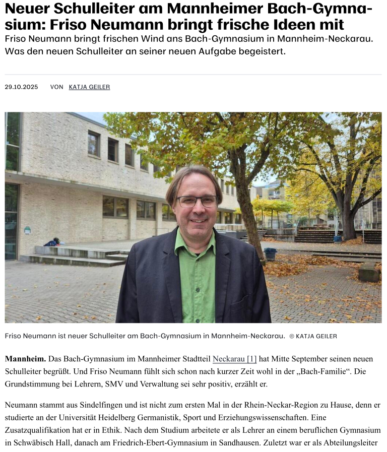 Neuer Schulleiter am Mannheimer Bach-Gymnasium